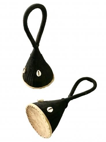 籐やロープで編まれたカゴの中に豆などを入れ、底にヒョウタンが付いているシェイカーです。